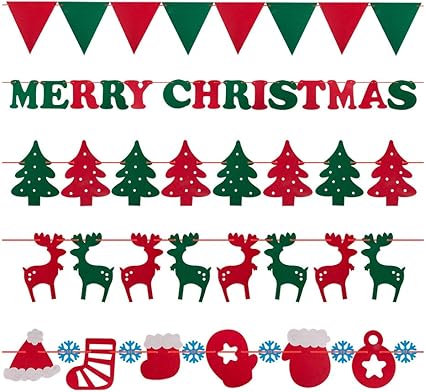 Amazon Com Merry Christmas Letter And Triangle Fabric Felt Banner Garland Hanging Party Decor Flags Garden Outdoor - Merry Christmas Letters Printable #26:
