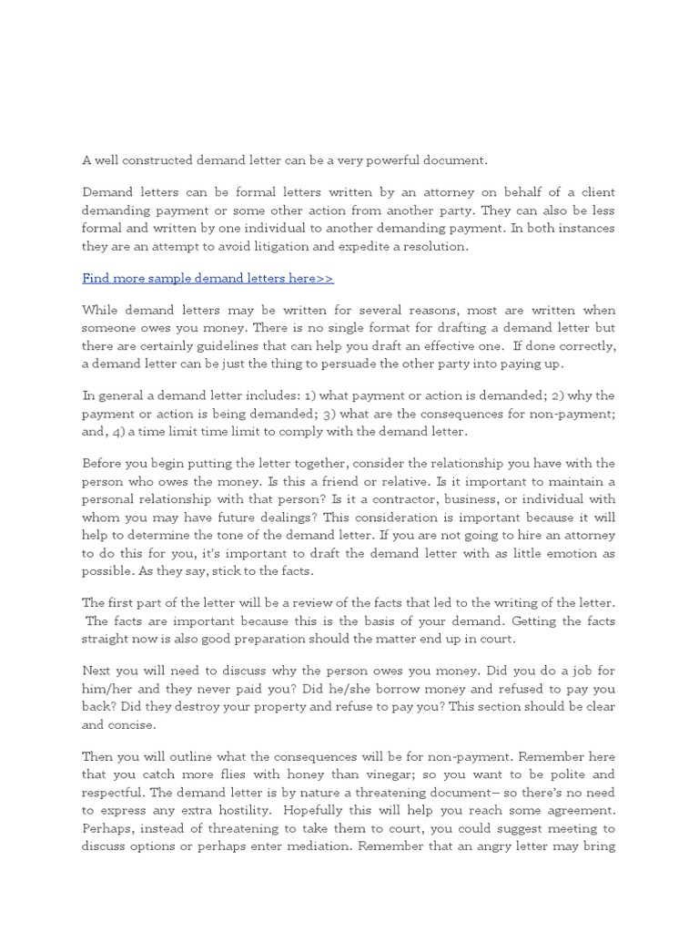 Free sample format of demand letter template.
