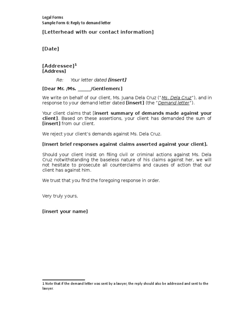 Sample response to demand letter.