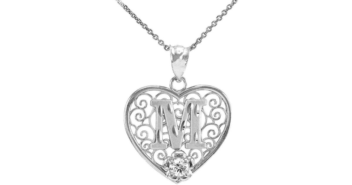 Amazing Savings On Rhodium Plated Sterling Silver Heart Shaped Monogram Initial Pendant Necklace Letter M , This Hand Stamped Letter M Initial Pendant And Heart Charm Hang From A 1.5Mm Sterling Silver Diamond Cut Ball Chain Charm Necklace With An.