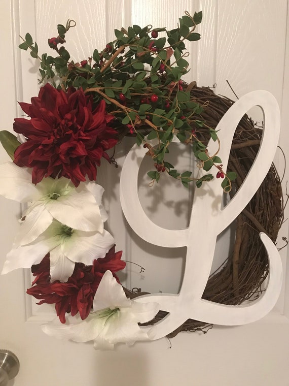 Front Door Wreath Spring Letter Wreath Initial Wreath Etsy - Celebrate Spring And The Return Of Flowers And Green Grass By Decorating Your Front Door With A Pretty Diy Wreath You Can Make At Home.