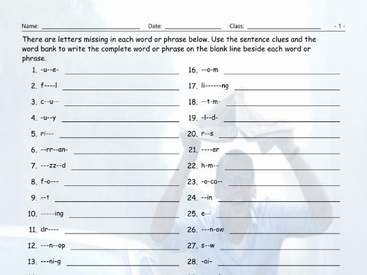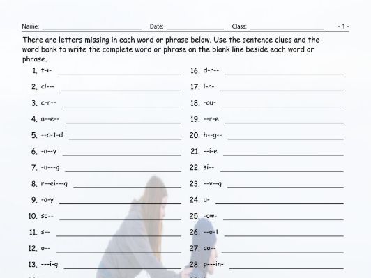Find The Missing Letter Connecting All The Words , Create A Missing Letter Worksheet.