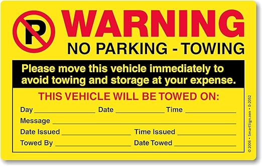 I Just Found Out My Car Was Towed I Assume It Was Towed Because It Supposedly Was Parked In An Area With Striped - Sticking One Of These No Parking / Tow Warning Stickers On A Careless Driver's Window Or Multi Reasons Notice: