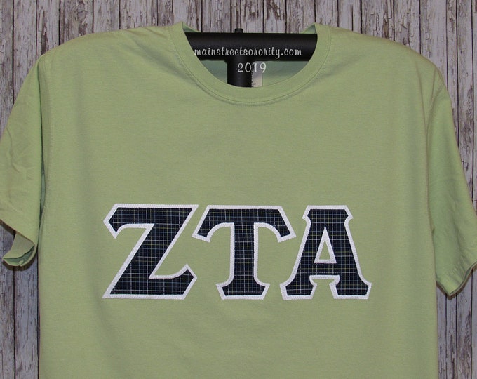 Zeta Tau Alpha Etsy. See more ideas about greek letter shirts, letter shirts, greek letters. Stencils print out letters from online to the size of your choice (i'd say 4 inches is a pretty good size). Black quarter zip sweatshirt with turquoise and white chevron print zta fabric letters and zeta tau alpha embroidered underneath in turquoise. There are 294 zta shirts for sale on etsy, and they cost $27.31 on average. Poshmark makes shopping fun, affordable & easy! Best match ending newest most bids. Check out our zta shirts selection for the very best in unique or custom, handmade pieces from our clothing shops. Scan the page to locate your sorority and then browse each lettered shirt. We're fully stocked, all geared up and ready to ship you new sorority letter shirts to wear this semester! Browse through different shirt styles and colors. Find new and preloved zta items at up to 70% off retail prices. Zta zeta tau alpha letters. See more ideas about greek letter shirts, letter shirts, greek letters. Available in a range of colours and styles for men, women, and everyone. Most of lettered shirts and tank tops were given away to the chapter for their scholarship auction (they get alpha gam bucks throughout the semester when i wear a sweat shrit during the winter and polo shirts in the summer.